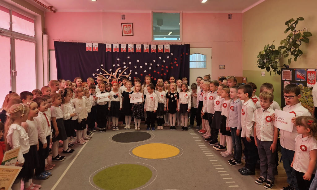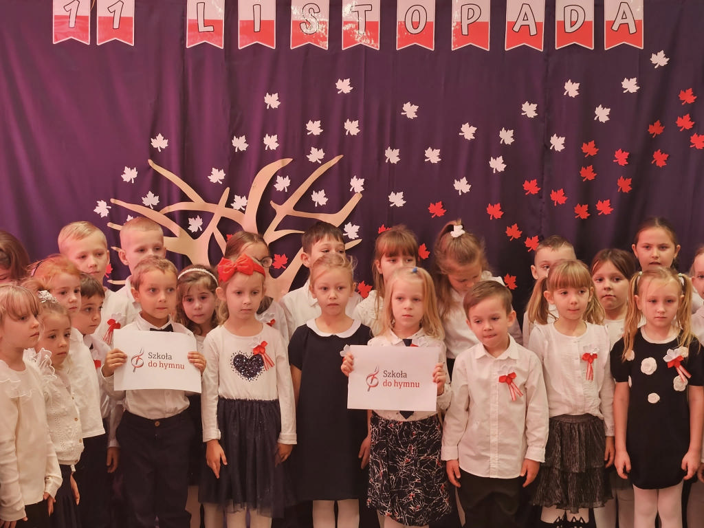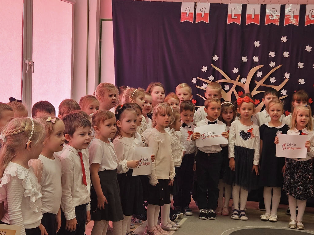 W ramach ogólnopolskiej akcji „Szkoła do hymnu” przedszkolaki wzięły udział we wspólnym śpiewaniu hymnu narodowego. Z dumą i powagą odśpiewaliśmy „Mazurka Dąbrowskiego”, świętując Święto Niepodległości 🇵🇱❤️