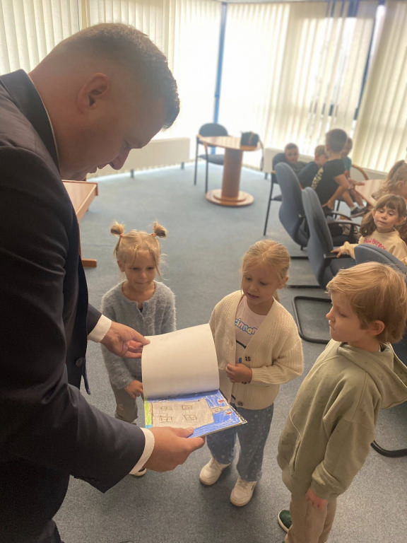 Podczas wizyty „Motylki” odwiedziły także salę konferencyjną, w której odbywają się sesje Rady Miasta. Zasiadły w miejscach radnych i mogły poczuć się jak uczestnicy prawdziwej debaty. Na zakończenie wycieczki dzieci podzieliły się swoimi wrażeniami – najbardziej podobało im się spotkanie z burmistrzem, możliwość obejrzenia planów miasta, poznanie tajemnic pracy urzędu oraz wizyta w sali sesyjnej, gdzie poczuły się jak prawdziwi radni.