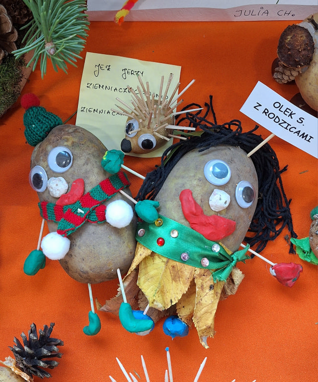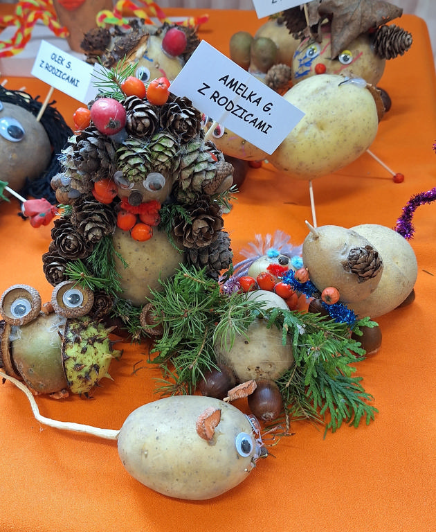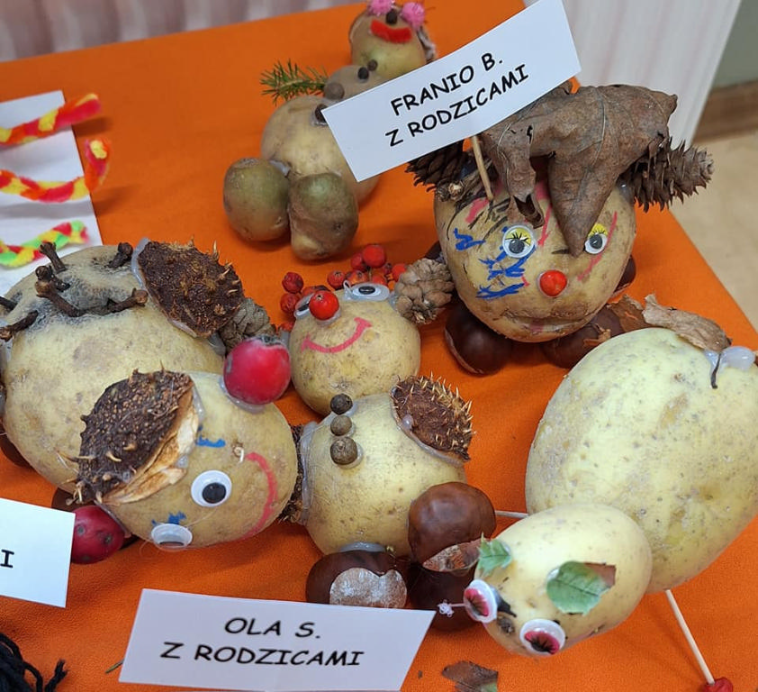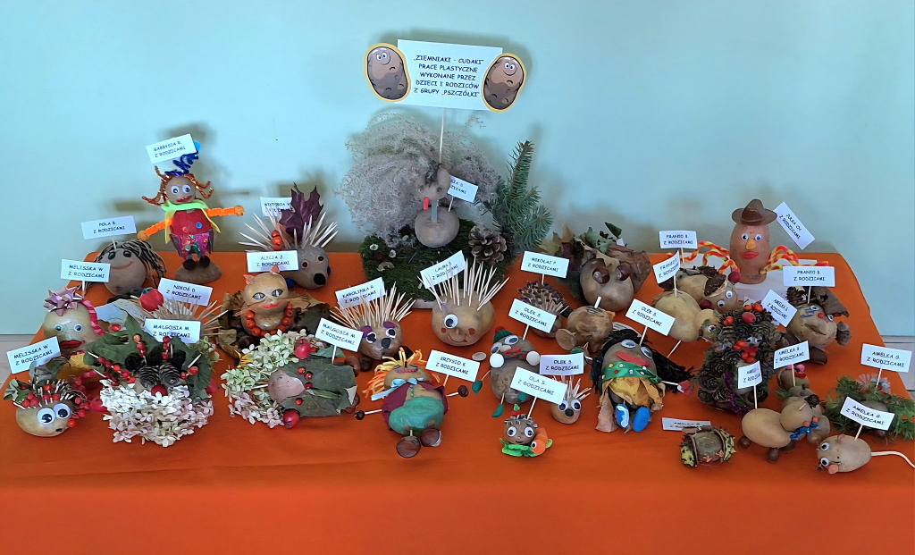Rodzice wraz z dziećmi z grupy "Pszczółek" "wyczarowali" niezwykłe prace plastyczne - "Ziemniaki - Cudaki", czyli przestrzenne stworki z ziemniakiem w roli głównej. Dzięki zaangażowaniu i kreatywności dzieci i rodziców powstała niezwykła kolekcja przepięknych arcydzieł, która pokazuje, jak wielką wartością jest wspólne działanie i rozwijanie dziecięcej wyobraźni.
